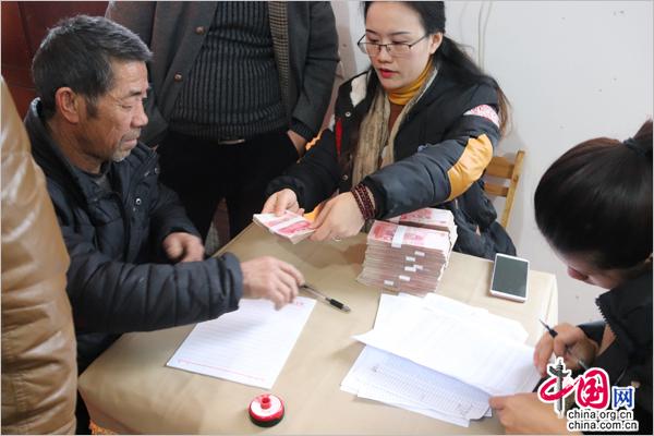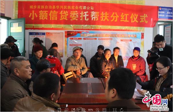 中国网1月5日讯 1月4日下午,地处南山国家公园境内的湖南城步苗族自治县兰蓉乡水源村举行信贷委托帮扶分红仪式,华兴民族实业有限公司董事长段伟妮为报木坪、水源、黔峰3个村65户建档立卡贫困户每户分红5000元。此次分红,让贫困群众实实在在的感受到了金融扶贫政策带来的实惠,增加了他们继续参与金融扶贫和脱贫致富的信心。