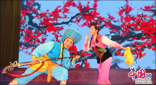 5日上午,简短的开幕式后,邵东县花鼓戏保护传承中心演出了大型传统花鼓戏《香罗带》。