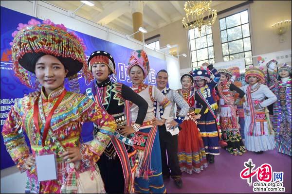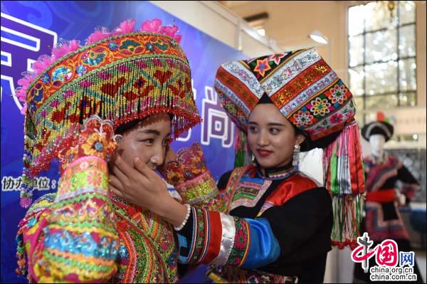 中国网1月13日讯 为期四天的“时尚北京”第三届国际时尚生活博览会1月12日在北京展览馆开幕,由中国人类学民族学研究会博物馆专业委员会特邀22家品牌入驻的民族时尚馆在大家期待中炫目开馆。傈僳族,苗族,土家族等七家民族特色文化品牌参展,带来各民族文化精华,遍及全国北京,深圳等7个省市地区,涵盖苗族蜡染,土家族西兰卡普等十余项非物质文化遗产。