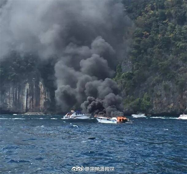 @中国侨网1月14日消息,据@泰国星暹传媒消息,1月14日,泰国JS100交通电台消息称,一艘载有多名中国游客和5名泰人的快艇于上午抵达皮皮岛VIKING洞时,突然发生漏油并起火爆炸,每日新闻称爆炸造成接近40名游客受伤,初步调查发现船长和中国游客共计五人重伤。
