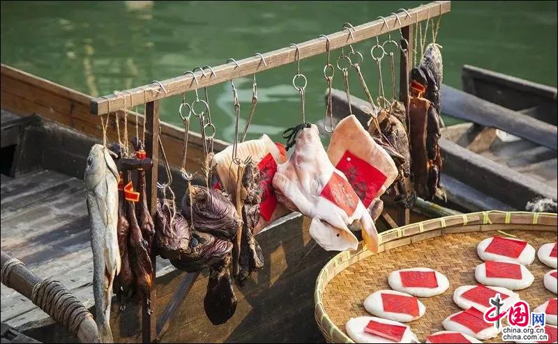 一入冬,沿街的、沿河的往常晒被子的衣架、晒衣裳的屋檐、窗棂上,门板边就都齐刷刷地挂出了竹竿,肥胖肥胖的大草鱼、鲜香光亮的酱鸭、香浓紧实的咸肉……腊味飘香,似乎成了过年的信号。