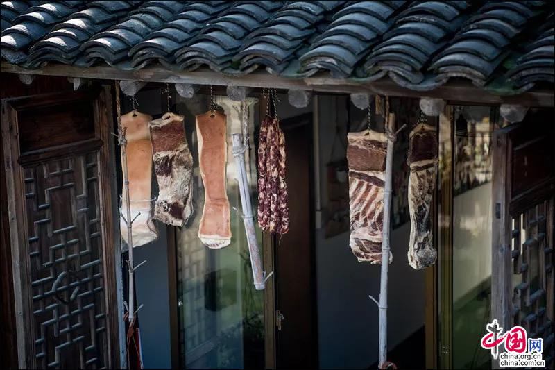 民宿房东、酒店餐厅也都纷纷抢做腊货,家家户户晒制的腊味让这个冬天显得更完整了。在如今冷冻食品代替了鲜活自制年货的时代,能在景区中吃到自制腊味显得难能可贵。