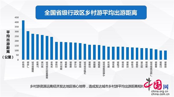 另外,通过对比全国省级行政区乡村游平均出游距离,我们发现,乡村游资源远离经济发达地区核心地带,造成发达城市乡村游平均出游距离相对较远。