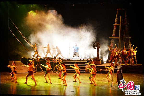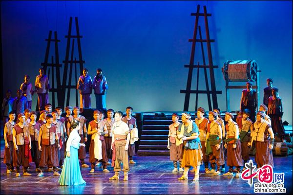 中国网3月16日讯 天车林立的盐场景象,激情澎湃的盐工号子,感人至深的盐都故事……3月14日晚,由四川省自贡市带来的大型原创民族歌剧《盐神》,以“全国优秀民族歌剧展(巡)演”剧目,在北京天桥艺术中心上演,并大获成功。100余名演员用两个多小时的倾情演出,淋漓尽致地展示了千年盐都自贡的形象和人文情怀,也在中国歌剧舞台上深深刻下了“盐都印记”。