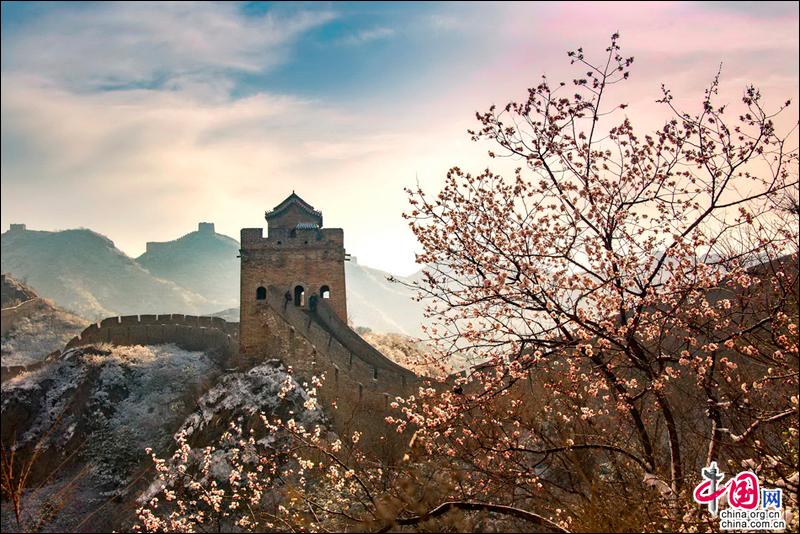 金山岭飞雪穿越时光 惊艳了古长城杏花香