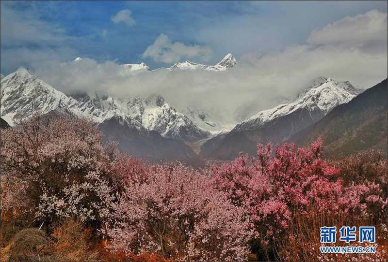 南迦巴瓦峰脚下鲜花盛开(4月6日摄)。