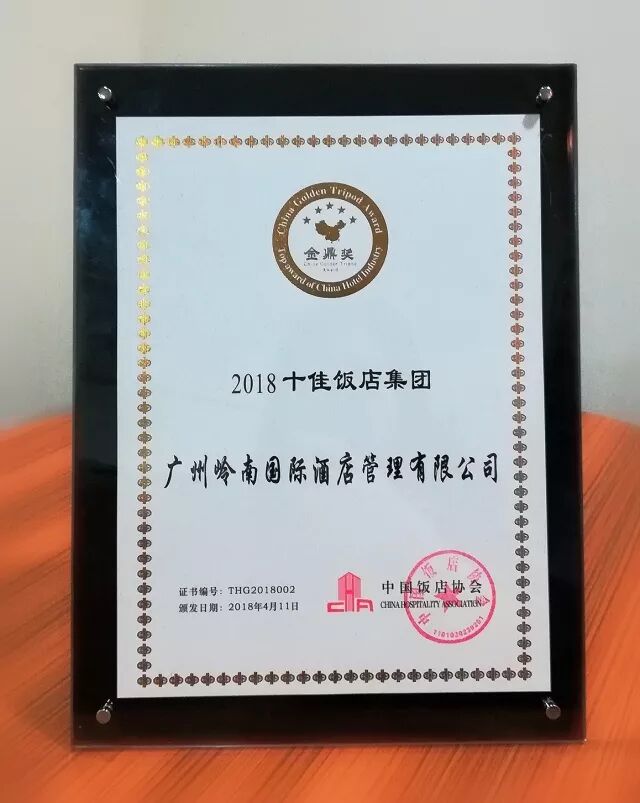 2018年4月11日,第七届中国饭店文化节暨世界级城市群饭店餐饮合作大会在广州盛大开幕。会上,新一届中国饭店业“金鼎奖”的榜单出炉,岭南国际酒店管理有限公司(简称:岭南酒店)喜获“年度十佳饭店集团”殊荣。