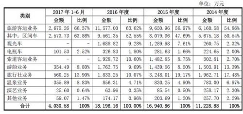 同时,2017年上半年因通往马牙山索道的道路进行拓宽维修,公司观光车及索道项目处于停运状态,导致观光车和索道业务收入较上年同期减少849.76万元,其中:索道收入同比减少452.98万元,观光车收入同比减少396.79万元。