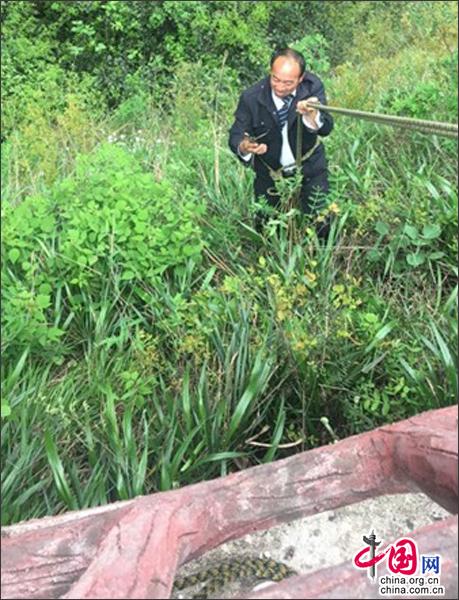 下午,有游客在骆驼峰栈道上拍照时,不慎把手机掉下山崖,卡在栈道下方的石壁上。景区工作人员刘峰闻讯,很快赶到现场,把安全绳往腰上一系,在其他人员的协助下翻过栈道扶栏,顺着绳索滑向手机掉落的崖壁草丛,顺利帮助游客捡回了手机。游客非常感动,赞不绝口。