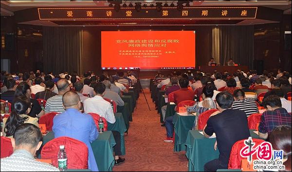 中国网5月7日讯 湖南省邵阳市纪委、市监委近日举办第四期“爱莲讲堂”专题讲座。全市共300余名纪检监察干部集中“充电蓄能”。担任第一课主讲的湖南省纪委、省监委宣传部副部长,省纪委、省监委网络舆情办主任王凯文结合新时代新媒体的新特点,联系自身丰富的工作经验,用大量鲜活的典型案例,深入浅出介绍了党风廉政建设和反腐败网络舆情应对处置技巧。