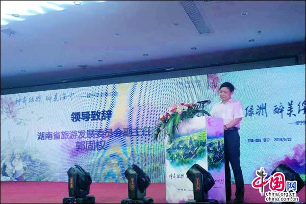 中国网5月22日讯 在2018湖南绥宁苗族四月八姑娘节暨竹文化旅游节开幕式稍后旅游推介会上,湖南省旅游发展委员会党组成员、副主任郭固权表示,湖南要从旅游资源大省迈入旅游经济强省,成为国际著名旅游目的地,力争到2020年实现旅游业总收入9000亿元。