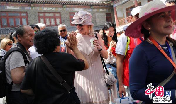 中国网5月28日讯 28日上午,来自世界各地的老年旅游大会参观团齐聚周村,领略鲁商发源地的历史古迹和文化内涵。25个国家的老年大学校长、中国各省市老年大学校长、中外旅游渠道商、海内外新闻媒体等100余人参加本次活动。
