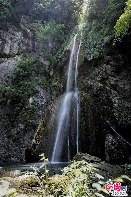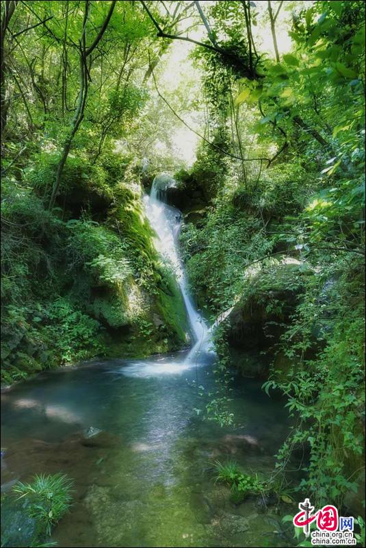 顺沟攀藤萝而进,险峻深邃,天似穹窿,置身其间,如空调天作,清新自然。层层叠叠瀑布群组成的叠溪瀑、高达38.8米形似马尾巴的马尾瀑,水花飞溅、轰声不觉,浑厚粗犷、大气磅礴;缓缓的溪流、平静的深潭,落叶漂浮,五彩缤纷……