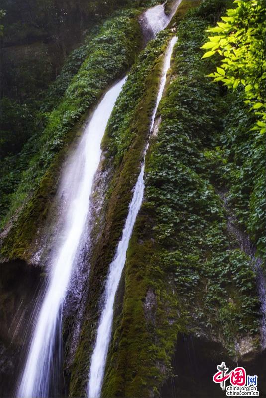 顺沟攀藤萝而进,险峻深邃,天似穹窿,置身其间,如空调天作,清新自然。层层叠叠瀑布群组成的叠溪瀑、高达38.8米形似马尾巴的马尾瀑,水花飞溅、轰声不觉,浑厚粗犷、大气磅礴;缓缓的溪流、平静的深潭,落叶漂浮,五彩缤纷……
