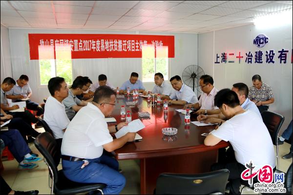 潘志立对两项目在主体结构施工、进度提升等方面做出的努力给予肯定,同时指出了项目方在二次结构施工、室内装修、现场管理上存在的不足。他强调,易地扶贫搬迁项目是民生工程、百年工程,项目方一定要以搬迁群众满意度达100%为目标,将“质量第一”理念贯彻项目建设始终,加强统筹协调,做到忙而不乱、急而不错,标准从严、质量从高,规范、有序进行每个步骤施工,并建立质量控制系统,杜绝重复劳动;要设身处地为群众着想,以“我就是搬迁户”角度严把质量关,坚决杜绝墙面裂痕、漏水、水电不通、地面不平、门窗不正等问题,同时,牢牢守住安全底线,科学组织施工,确保将项目打造成为省优、样板、标志性工程。