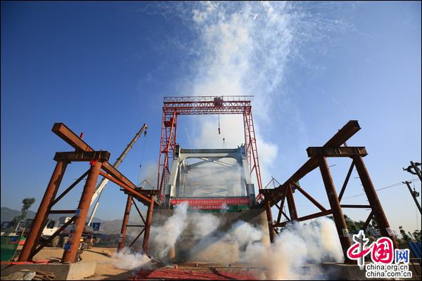 该桥于2016年6月19日顺利浇筑了全线第一根钻孔桩,2017年6月7日完成了成昆铁路峨眉至米易段第一座钢桁梁的架设,为后续工程的全面冲刺奠定了坚实的基础。在中铁九局五公司成昆项目全体员工的不懈努力下,克服困难、科学布局、精心组织,历经两年艰苦奋战,终于保质保量提前完成该桥下部工程,比建设单位排摆的架梁工期提前了8个月。