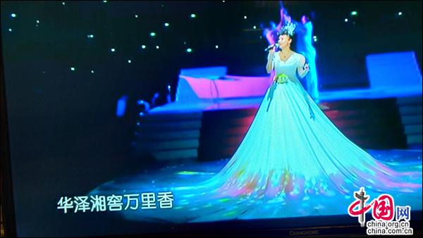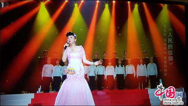 中国网7月16日讯 14日晚22:38,崀山“橙子妹”刘元元登上中央电视台综艺频道CCTV-3《星光大道》舞台,深情演唱了《人民的信仰》、《崀山脐橙香》和《浪漫崀山》等歌曲,其中《人民的信仰》在刘元元第四关和侯本岗最终PK时,再次在央视舞台唱响,这已经是这首歌曲第二次在中央电视台节目中演出。同时,崀山脐橙、瑶王宴及其他崀山土特产也在星光大道的舞台亮相,“百里脐橙连崀山”主题宣传标识贴上舞台道具,并在舞台上由刘元元口述。
