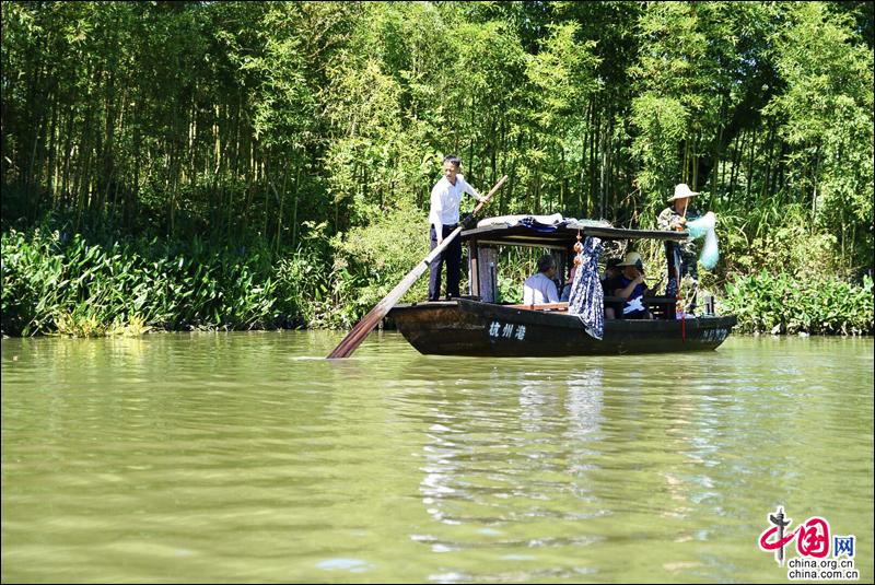 七月盛夏灼热的阳光照在额头,暖风拂过面颊,置身于宁静的西溪洪园却心清凉,随摇橹悠悠缓缓飘向碧波最深处,一行人跟随湿地渔夫乘船捕鱼去。