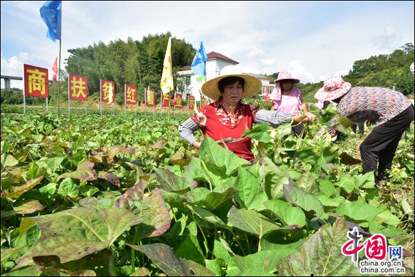 中国网7月29日讯 江西赣州市安远县2018电商扶贫暨电商扶贫产品全网销售推介会26—27日在安远举办,与会嘉宾通过参与研讨会、前往电商扶贫产品基地,以及现场观摩、品鉴紫山药、采挖体验、品鉴红薯等形式,深入了解了安远县农特产品及安远县的电商扶贫模式。