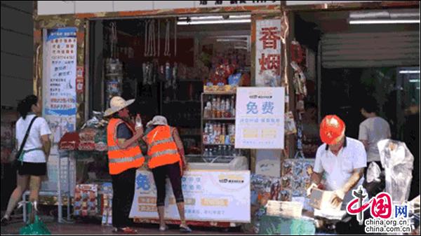 中国网7月30日讯 昨日,湖南郴州发布高温预警,室外温度更是接近40℃,有爱心人士分别在北湖市场附近、五岭新天地商业城南门口、MHC minimall东门口,为环卫工人、快递小哥等的聚集地设立了爱心补给站,简单又贴近生活,为高温下的户外工作者免费提供冷饮。