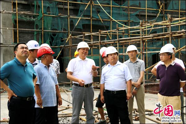 在古国毋敛城,潘志立首先来到乐殿(大戏楼)、州署,通过察看建设现场和规划图纸,详细了解正在打造的古风文物展陈项目装修进度、陈列布局、安防装置等,随后还察看1919民国风情街装修及招商情况。