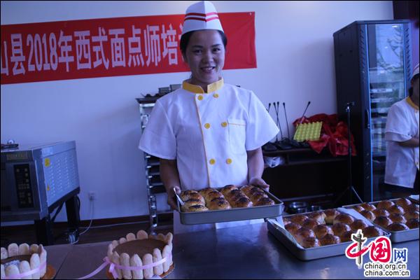 同样是贫困户的学员蒙泽翠,她家也是2014年被评为贫困户的。蒙泽翠的丈夫身体不太好,这几年夫妻二人一直在独山附近打临工,家里收入十分有限。前不久,她无意中收到贵州大学学术交流中心一位老师提供的技能培训信息后,就报名参加了这个西式面点师培训班。蒙泽翠说,原来很担心自己学习有困难,但进了培训班后,老师们非常关心她,对她的学习十分关照,不但免费培训,每天还有60块钱的生活补助,使她的学习进行得很顺利,很快就掌握了相关技能,找到了一个“面点师”的感觉,打算先找个面包店打打工,等具备条件了,就自己创业。