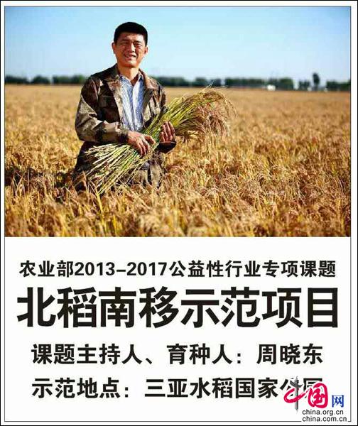 2013年,农业部将周晓东提出的《本地与外引种子资源高效结合与利用》课题立项,他是品种资源的首席专家负责北稻南移的具体实施。
