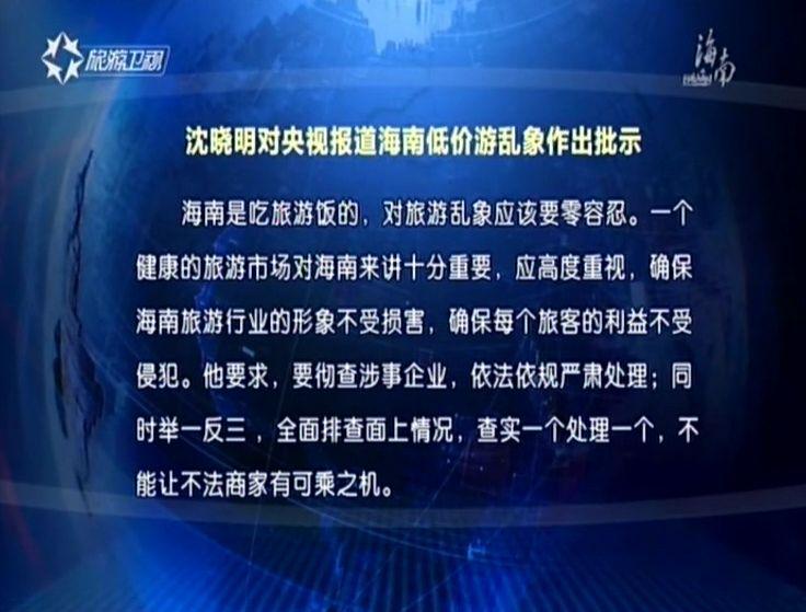 刘赐贵沈晓明对央视报道海南低价游乱象作出批示:彻查涉事企业依法依规严肃整治维护国际旅游岛和自由贸易区形象