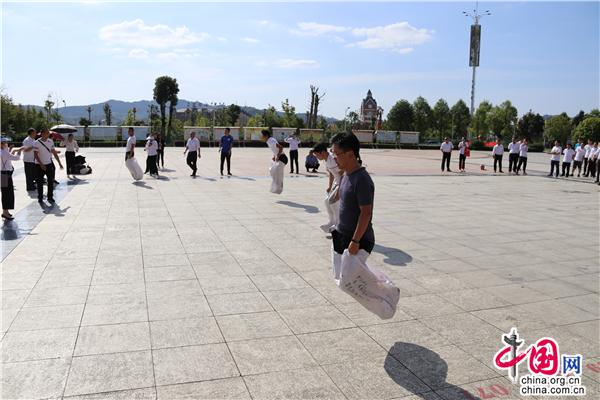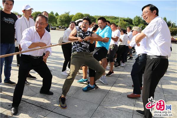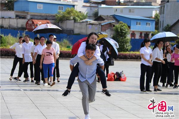 随着裁判员的一声哨响,全民健身、猪八戒背媳妇、高山流水、袋鼠跳、拔河比赛等活动在高级中学金鳅广场轮番上演。在“袋鼠赛”游戏环节,男女队员配合默契,用编制袋套住双脚,双手拉起袋口,轮流往返跑,各种风趣的姿态和表情引得众人捧腹大笑。“拔河比赛”中,各参赛队伍势均力敌,你来我往,引来阵阵欢呼,现场气氛不断升温。最后,出席本次活动的领导为趣味游戏活动获胜队伍一一颁奖,将活动推向高潮。