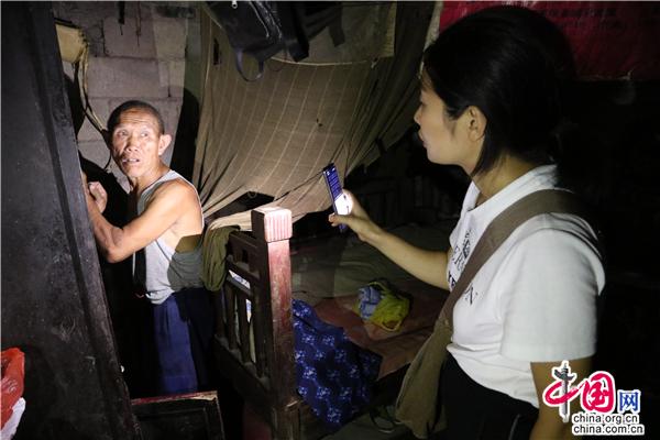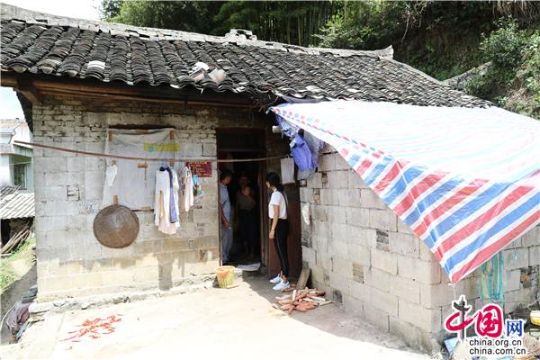 乡亲们把袁姗姗当姑妈,她把平堡当娘家。贫困户刘诗才的家,仅有两间破砖房,两条麻皮口袋蒙着的窗户令狭窄的屋内漆黑一片,一家4口都住在这座不足40平米的黑屋子里,家里除了床、柜子、坛坛罐罐后,能活动的面积不超过10平方米。户主刘诗才听力残疾,妻子语言表达障碍,大女儿就读于市区的职业技术学院,现在外务零工,小女儿刚上初中,夫妻俩虽然勤奋,但日子过得依然十分艰辛。
