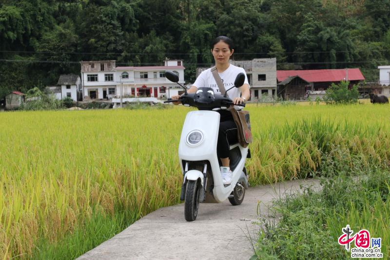 中国网9月14日讯 在马场坪街道平堡村的山间小坝子中,河水潺潺,秋风送爽,颗颗饱满的稻谷呈现出一片金色。稻田里,“咚咚”的收谷声把乡亲们丰收的喜悦传向远方;田间小道上,一道洁白的身影随着电动车蜿蜒前行于稻浪中,驶向不远处的村寨。正是这个不断移动在田间地头、农家小巷的身影,给小山村增添了几分绚丽的色彩。