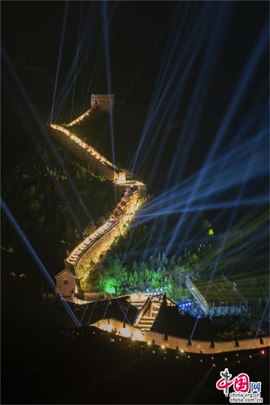 万里长城,金山独秀。首届河北滦平旅游文化节期间,以古长城为背景,古城墙为幕布,一场璀璨灯火点亮夜空。