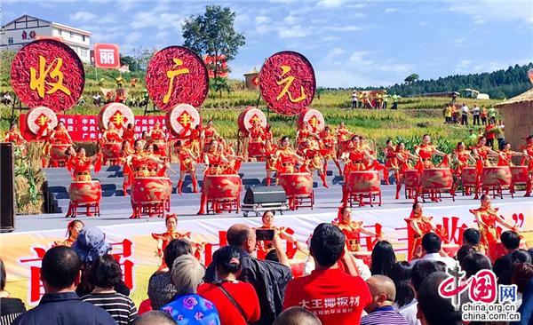 中国网9月23日讯 秋分已至,稻谷飘香,蟹肥菊黄,提醒着人们又到了丰收的季节。9月21日,首届“中国农民丰收节”四川广元庆丰收活动在剑阁县汉阳镇金星村举行。千余名农民朋友欢聚一堂,通过民歌民舞表演、传统打谷比赛、新特奇鲜活农产品展示、品尝剑门关豆腐宴、剑门关土鸡宴、锯山垭大肉宴美食等丰富载体,共庆首届“中国农民丰收节”。