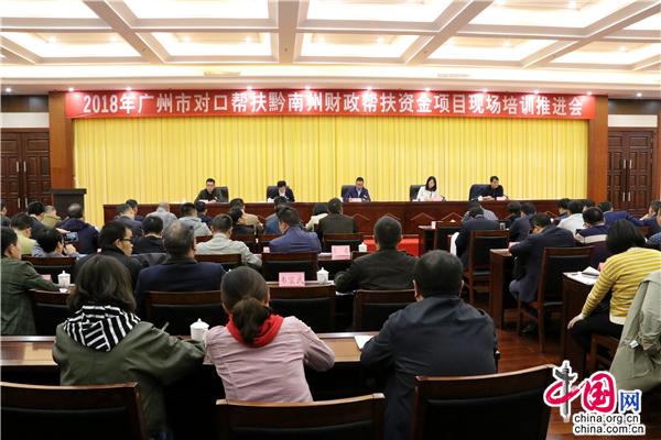 中国网10月11日讯 10月10日,2018年广州市对口黔南州财政帮扶资金项目现场培训推进会在独山召开,总结了当前广州市对口帮扶资金项目相关工作,并就下一步工作作安排部署。