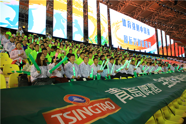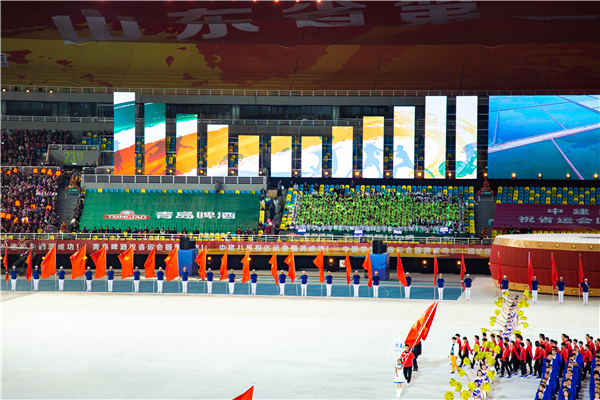 青岛啤酒组织公司员工400余人组成方阵,在开幕式现场身着统一服装洋溢着青春的气息和火热的激情,用响亮的口号为省运健儿呐喊助威。