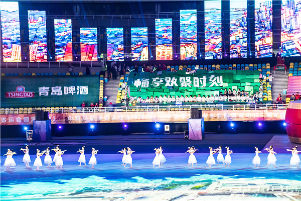 伴随着激昂的鼓声,活力四射的青啤啦啦宝贝们带领400人方阵挥舞荧光棒,成为场馆内最亮眼的助威方阵,将开幕式表演前的气氛推向高潮。
