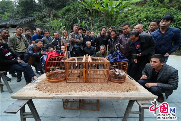 中国网10月18日讯 10月17日,贵州省铜仁市玉屏侗族自治县,斗鸟爱好者聚集到一起斗画眉。