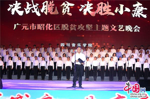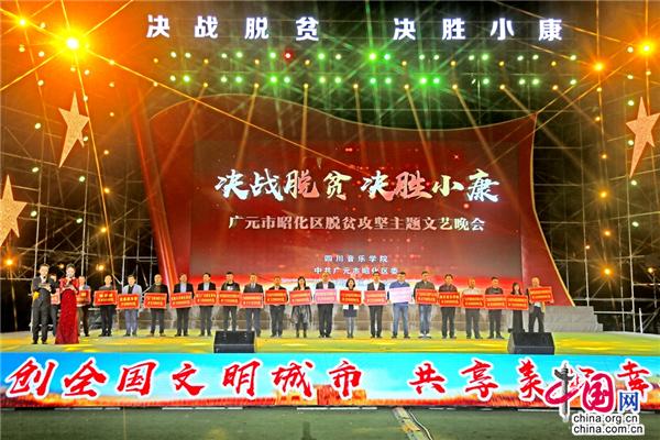 中国网10月18日讯 10月17日,是我国第五个扶贫日,也是第26个“国际消除贫困日”。当晚,“决战脱贫,决胜小康”广元市昭化区脱贫攻坚主题文艺晚会在元坝中学举行,来自全区各条战线的干部职工,用飞扬的歌声、翩翩的舞姿,唱响了昭化区脱贫攻坚之歌。
