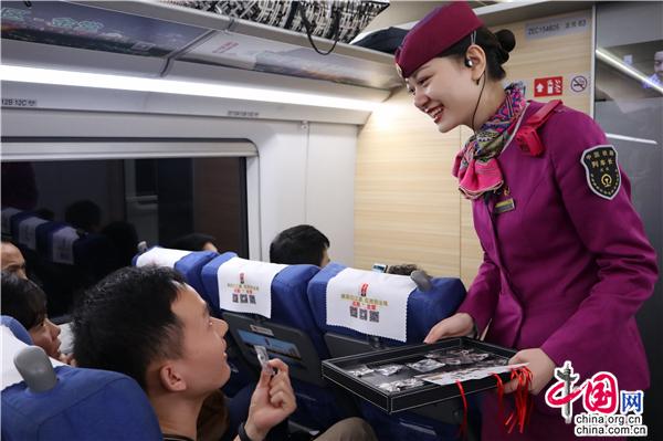 中国网10月19日讯 随着高铁的飞速发展,越来越多的旅客在出行时,会选择乘坐动车组列车,一些不文明行为也随之被带上列车。为了打造文明出行环境,10月17日,重庆客运段动车一队在重庆北至成都东G8508次列车上开展“高铁文明之旅”主题活动,通过邀请旅客填写调查问卷、展板等方式,积极向乘车旅客进行“文明乘车”宣传。