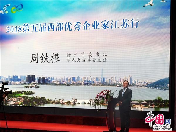 周铁根代表徐州市委、市政府对各位领导、嘉宾、客商的到来表示热烈的欢迎,并围绕徐州作为汉文化的发祥地、全国重要的综合性交通枢纽、区域性的中心城市、快速发展的成长型城市,以及在产业转型、城市转型、生态转型等方面的情况进行了详细介绍。他指出,西部优秀企业家江苏行活动是我省推动产业高质量发展的创新之举,是加强东西部地区交流合作的重要平台,也是打造苏商“金字招牌”的战略行动。此次西部优秀企业家江苏行活动走进徐州,不仅为大家畅叙乡情友情、共谋发展大计提供了难得契机,也为我们集聚高端资源、开展战略合作创造了有利条件。我们将抓住机遇、用好机遇、放大机遇,展现最大诚意,提供最优服务,努力使各位企业家朋友的徐州之行,成为一次令人难忘的乡情之旅、发现商机的合作之旅、成果丰硕的收获之旅。衷心希望各位企业家朋友珍惜宝贵商机,全面考察项目,深入洽谈交流,在徐州多走走、多看看,充分感受徐州的发展态势,领略徐州的发展热情,共享徐州的发展机遇,在徐州这片投资热土上开创事业发展新辉煌!