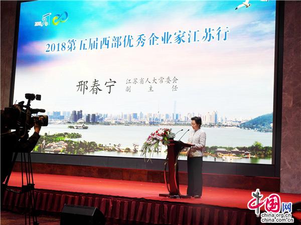 邢春宁在讲话中指出,2014年以来西部优秀企业家江苏行活动已连续举办五届,得到了省委、省政府领导的充分肯定,得到了各市和省相关部门的积极支持,深受广大企业家认可和喜爱,影响力也越来越大,搭建起东中西合作交流的新平台,成为汇聚优质资源的“强磁场”,凝聚了合作发展的新共识,创造了投资发展的新机遇。她希望苏商企业家珍惜机会、抢抓机遇,在感受乡音乡情,了解家乡发展变化的同时,发展不忘故土,腾达不忘桑梓,积极回归家乡、投资兴业、回报桑梓。