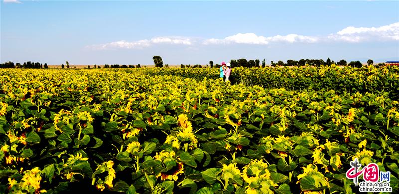 游客在一望无际的向日葵丛中留连忘返;