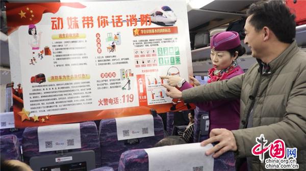 中国网11月6日讯 冬季,是火灾多发季节。为了提升全民消防安全意识,在11月9日全国“消防宣传日”前夕,重庆客运段动车二队在重庆北至福州 D2228次列车上开展“动妹带你话消防”活动,通过讲解与问答结合的形式,深化旅客对“全民参与,防治火灾”的认知。