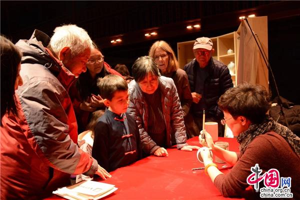 展览现场,醴陵釉下五彩瓷烧制技艺代表性传承人陈利、棕编传承人王文定、湘绣传承人刘雅以及湘惠五洲茶学会创始人欧阳平修,也一一向外国友人现场演示非遗之美。