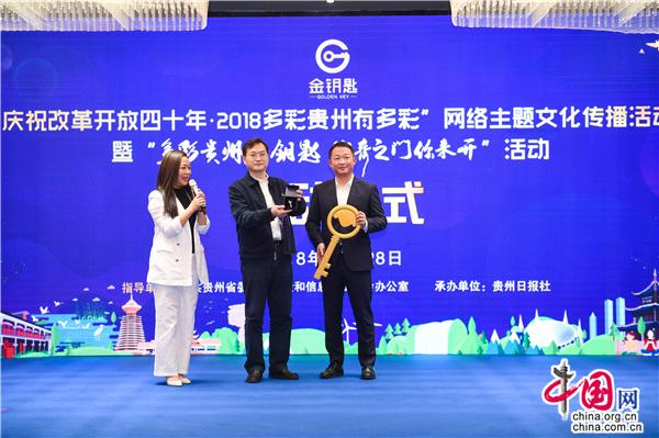 中国网11月29日讯 11月28日下午,记者从贵州饭店国际会议中心获悉,由中共贵州省网络安全和信息化委员会办公室指导、贵州日报社承办的“庆祝改革开放四十年•多彩贵州有多彩”网络主题文化传播活动暨“多彩贵州金钥匙 神奇之门你来开”活动在贵阳启动。