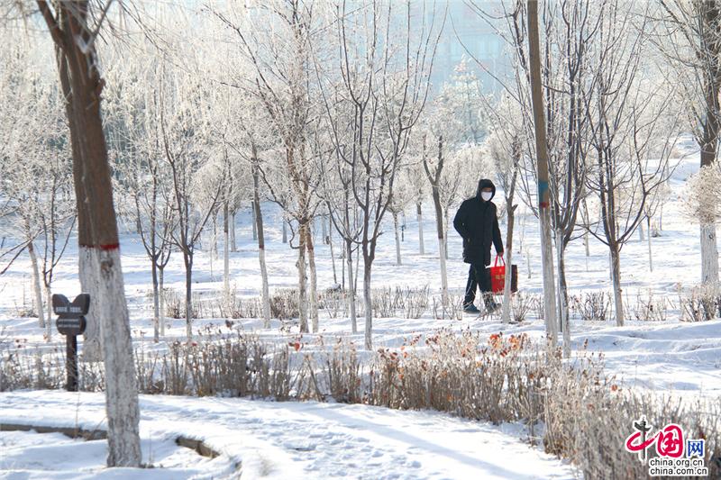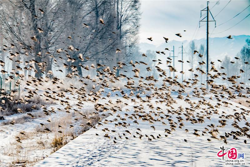 我,还有觅食的麻雀,我们陪着雪花飞舞。