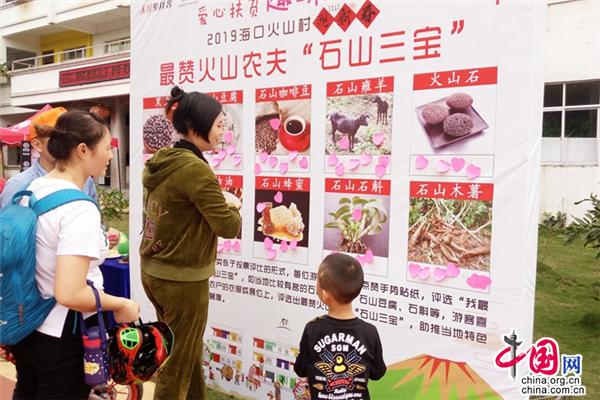 火山自行车文化节期间,在石山镇火山口人民骑兵营内,海口市旅游委还特别设置了“火山村落爱心扶贫集市”,秀英区石山镇乃至海口各区的贫困户,在集市上销售他们的正宗优质农产品,吸引了广大市民游客在此选购。