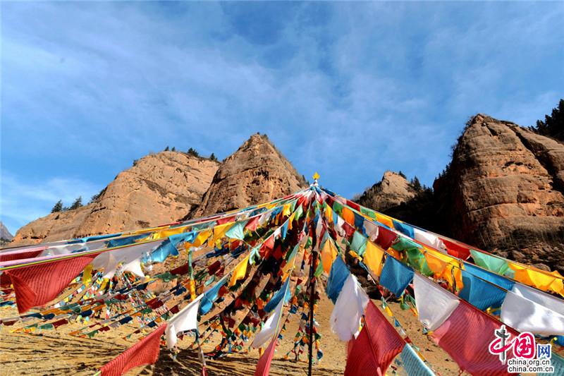 村子不远的大山绝壁上,开凿着几个洞窟,供奉着几尊佛像,被称为金塔寺,年代久远,为国家级文物保护单位。洞窟飞临绝壁,离地数丈之高,鹰翔高空,风吹松林,浪涌涧底,佛祖坐观世事,洞察万物,虚静,空灵,为大都麻罩上了一层又一层的神奇幻影。