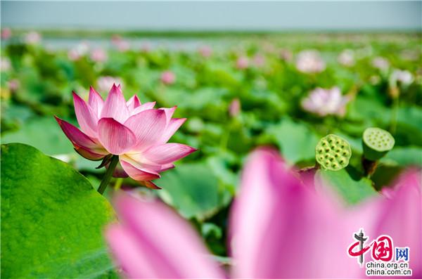 中国网8月2日讯 盛夏的绚丽多彩和湖光沙色总是很配,正值荷花盛开的时节,深深浅浅的荷花若隐若现的开在碧绿的荷叶间,簇拥绽放,迎风摇曳着。不仅如此,七月沙湖新开辟了湖东湿地线路,游客入园便可观赏到一片紫色的花海,一簇一簇开得正繁茂,远看像大片粉紫色的云霞,美得恍如梦境。