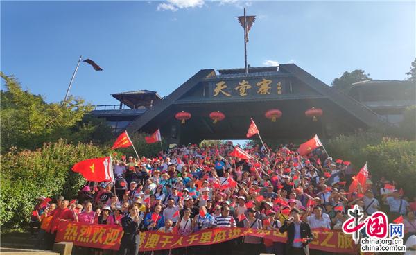 中国网9月29日讯 国庆节前夕,为庆祝中华人民共和国70周年华诞,由安徽天堂寨风景区、金寨红摇篮、邮福国旅金寨分公司联合广东端城国旅香港至尊假期等旅行商从9月3日开始发起“千人千里挺进大别山重走红军路”系列活动。9月21日近千名粤港澳游客来到大别山安徽天堂寨,正式启动“粤港澳千人千里挺进大别山”系列活动。